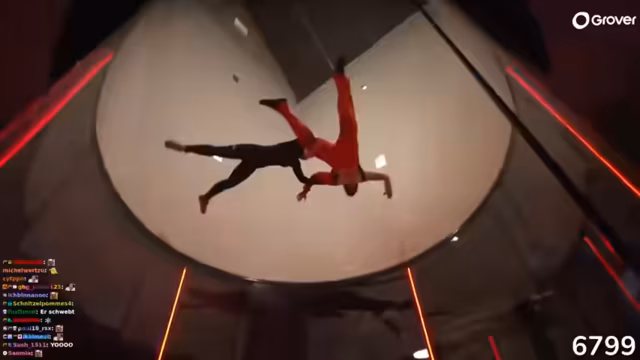 03:53:10Nach der Einkleidung und Sicherheitseinweisung beginnen die ersten Flugversuche im Windtunnel. Die Streamer sind sichtlich aufgeregt und angespannt. Die Person mit den Schulterproblemen äußert weiterhin Bedenken und fühlt sich unwohl. Trotzdem versuchen sie, die Anweisungen der Trainerin zu befolgen. Die Zuschauer im Chat reagieren gemischt, einige machen sich Sorgen, andere amüsieren sich über die unbeholfenen Flugversuche. Die Geräuschkulisse im Windtunnel ist so laut, dass die Streamer sich gegenseitig kaum verstehen können, was zu humorvollen Missverständnissen führt. Die Erfahrung wird als 'geistig krank' und 'krass' beschrieben, wobei die visuellen Eindrücke des Fliegens im Windtunnel besonders beeindruckend sind. Die Streamer sind fasziniert von der Kraft des Windes und den Möglichkeiten, die sich daraus ergeben, auch wenn die anfänglichen Versuche eher komisch wirken.