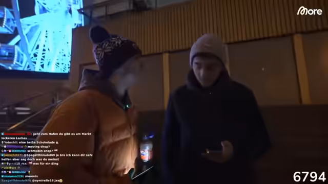 00:54:33Die Streamer begeben sich zu einem Geldautomaten, um Bargeld für den Kauf der Waffeln abzuheben. Es gibt Unsicherheiten bezüglich der PIN und der Funktionsfähigkeit der Karte, aber schließlich gelingt die Abhebung. Die Gruppe kehrt zum Waffelstand zurück, um die restlichen Waffeln zu bezahlen und zu verteilen. Die Aktion wird fortgesetzt, und die Streamer fühlen sich wie MrBeast, während sie die Waffeln an die Schüler und Besucher des Weihnachtsmarktes verteilen. Es wird viel gelacht und gescherzt, während sie die gute Tat vollbringen und die Schüler bei ihrer Spendenaktion unterstützen. Die Stimmung ist weiterhin positiv und energiegeladen.