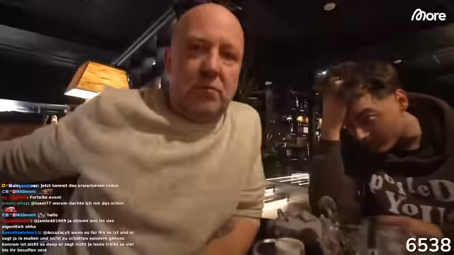 07:31:18Es entbrennt eine humorvolle Diskussion über den Konsum von Alkohol, insbesondere Whisky. Ein Gesprächspartner, der sich als 53-jähriger Mann vorstellt, teilt seine Lebensphilosophie, die von der Endlichkeit des Lebens und der Notwendigkeit, jeden Moment zu genießen, geprägt ist. Er spricht über seine Reisen, wie einen bevorstehenden sechswöchigen Aufenthalt in Thailand, und betont, dass er keine Zeit mehr für "Arschlöcher und Wichser" habe. Er erwähnt auch, dass er seine Eltern früh verloren hat und dies seine Sichtweise auf das Leben beeinflusst hat. Die Streamer hören aufmerksam zu und lassen sich von seiner Lebenseinstellung inspirieren, während sie gleichzeitig die Risiken von übermäßigem Alkoholkonsum thematisieren und betonen, dass Alkohol in Maßen genossen werden sollte. Die Diskussion ist von einer Mischung aus Ernsthaftigkeit und Humor geprägt, wobei der ältere Mann seine Erfahrungen und Ansichten teilt.