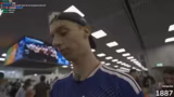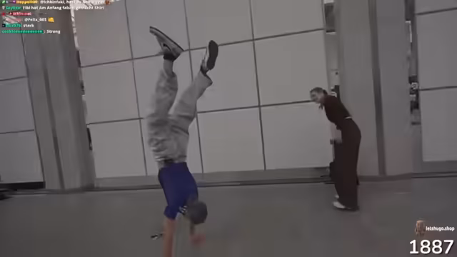 00:34:05Der Streamer stellt sich verschiedenen sportlichen Herausforderungen auf der Messe. Er versucht, Gewicht an einer Hantelstange zu halten und scheitert zunächst. Nach mehreren Versuchen gelingt es ihm, 10 Kilo für 6 Minuten zu halten. Danach vergleicht er sich mit anderen Besuchern und versucht, neue Herausforderungen zu finden, darunter ein Boxmatch gegen einen anderen Streamer.