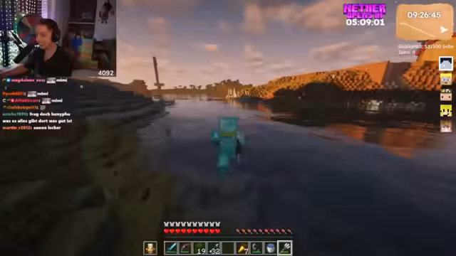 03:29:15Nachdem sich die persönliche Situation geklärt hat, widmet sich der Streamer wieder seinem Gameplay. Er plant ein 'Nether-Karotant', ein gemeinsames Event im Nether, um Ressourcen wie 'Upgrade-Templates' zu sammeln. Gleichzeitig zeigt er sein Inventar und seine Fündigungen im Bergbau, darunter Diamanten. Er plant, seine Koordinaten mit anderen Teilnehmern zu teilen und ihnen erlaubt, gefundene Ressourcen zu behalten, was eine kooperative und freundschaftliche Atmosphäre schafft. Der Stream wirkt nun harmonisch und auf gemeinschaftliches Gameplay ausgerichtet.