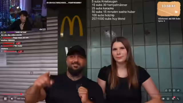 18:38:38Die Nachtschift beginnt, nachdem Hugo sich verkauft hat. Der Streamer, der seit zwei Jahren streamt, unterstützt seinen Kollegen Hugu auf Madeira finanziell, um ihm die Möglichkeit zu geben, sich einem größeren Publikum vorzustellen. Beide sehen diese Situation als eine Win-Win-Gelegenheit und eine neue Erfahrung. Es werden pers�nliche Informationen ausgetauscht, darunter auch eine Diskussion �ber die L�nge der Karriere von Hugu, der bereits l�nger als f�nf Jahre streamt.