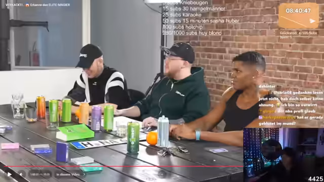 16:34:20Trotz der falschen Entscheidung erhält die Community als Trostpreis einen selteneren Labubu-Pop figuren gezogen. Darauf folgt eine Werbepause für verschiedene Produkte wie Gunnar Energy, den Zauberkarten-Hersteller Somnium und das Getränk Gönnergy. Der Streamer klärt, dass sein Partner Nahim kein werblicher Abzocker ist, sondern ein offizieller Partner.
