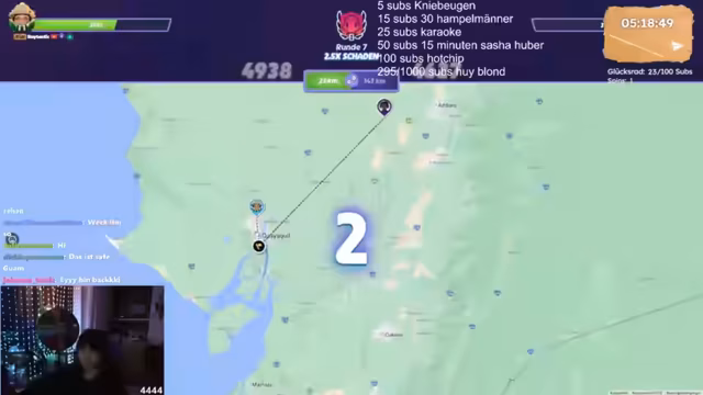 20:58:06Der Streamer beginnt eine Nacht-Session von GeoGuessr, nachdem er Hugo gegen 11:30 Uhr ablösen wird. Nach einigen technischen Vorbereitungen und einer kurzen Unterhaltung startet er mit einem Ziel von 1100 Elo. Die erste Runde gegen einen NPC in Chile erweist sich als äußerst schwierig und wird mit einem Verlust von 2400 Schaden beendet, was den Streamer frustriert, da er nicht erwartete, dass der NPC die Runde gewinnen würde. Danach wechselt er zu einer weiteren Runde, um die Verluste auszugleichen.