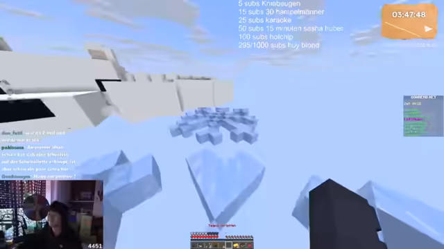 16:07:31Während der laufenden Diskussion meldet sich ein Zuschauer über Schule und Mobbing. Gleichzeitig treten technische Probleme auf, da mehrere Minecraft-Instanzen gestartet werden, was zu Verwirrung führt. Der Streamer muss die Situation klären und bann einen Zuschauer, der den Server scheinbar betrügt. Der Fokus der Community liegt weiterhin auf der Identitätsprüfung der Teilnehmer.