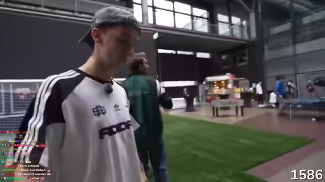 02:09:38Es wird festgestellt, dass eigentlich Challenges geplant waren, der Streamer sich jedoch erschöpft fühlt. Es wird ein Intro für Polaris benötigt. Ein YouTube-Projekt in Hamburg, bei dem der beste Döner und das beste Steakhouse getestet wurden, wird angeteasert. Der Streamer versucht sich an einem Handstand, scheitert jedoch aufgrund von Kraftlosigkeit. Es wird bestätigt, dass keine weiteren Challenges stattfinden werden, sondern eine Talkrunde ansteht. Der Streamer kündigt an, während der Talkshow stummgeschaltet zu sein. Es folgt die Ankündigung eines 'Unboxing der Kings League Germany' live aus der Cupra Arena in Köln. Es wird ein fettes Line-Up, neue Jerseys und die Präsidenten auf der Couch versprochen. Die neuen Trikots werden gelobt, insbesondere das eigene, das von Adidas überraschend entworfen wurde. Basti, der remote dabei ist, wird als Außenreporter bezeichnet und soll Sounds ins Ohr spielen. Die Teilnehmer der Runde werden begrüßt, darunter Hugo, Ebru, Philo, Zabex, Papa Platte, Jan Vierte Arp sowie die Neuen Kony und Mooba von G2.