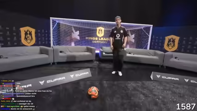 01:30:33Der Streamer widmet sich verschiedenen Schusstechniken im Fußball, darunter Latte-Versuche und Volleyschüsse. Er zeigt beeindruckende Fähigkeiten und versucht, seinen Highscore zu übertreffen. Ein Mitspieler, der behauptet, 22 Jahre alt zu sein, tritt gegen den Streamer an, wobei es zu einem humorvollen Austausch über Spielweise und Alter kommt. Die Szenen sind durch funkelnde Bemerkungen und technische Schwierigkeiten geprägt, was die Unterhaltung aufrechterhält.