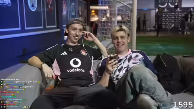 01:49:32Es wird über die Bedeutung des Band-Emojis im Chat gesprochen, das vermutlich bei Banns verwendet wird. Die Zuschauerzahlen werden thematisiert, wobei der Rückgang nach dem Besuch von Papaplatte festgestellt wird. Dies wird als typisch für einen Mittelklasse-Streamer bezeichnet. Es folgt die Frage, wann es endlich losgeht, und die Feststellung, dass bereits alles mehrfach gemacht wurde. Der Streamer äußert den Wunsch nach einer Fanta. Es wird ein privates Fortnite-Spiel mit Hugo erwähnt, bei dem der Streamer besser gespielt haben will. Es wird über eine Wette um 100 Subs gesprochen, bei der auf einer speziellen Map gegeneinander gespielt wird. Die Map soll competitive sein und Counter-Strike ähneln. Die Teilnahme von Basti wird erwähnt, und es wird über die Möglichkeit diskutiert, Fortnite über Umwege auf dem iPhone zu spielen. Es wird kurz über ein Interview mit Hugo gesprochen und die Frage aufgeworfen, ob jeder ein Interview geben muss. Der Streamer äußert Bedenken bezüglich eines bevorstehenden Elfmeters in Brasilien vor großem Publikum und erinnert sich an seine Nervosität beim ersten T-Schuss.