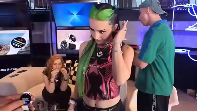 02:32:55Der Stream startet mit einer Diskussion über eine anstehende Challenge, bei der jeder Teilnehmer für sich kämpft. Die Aufgabe, "POV Reactions", wird vorgestellt: Die Teilnehmer ziehen eine Situationskarte und müssen mit einem Gesichtsausdruck oder einer Pose darauf reagieren. Dies geschieht mithilfe des Galaxy Z Flip 7 über die Gestensteuerung innerhalb von 30 Sekunden. Die erste Person, Lara, zieht die Karte "verzweifelt" und stellt sich entsprechend unauffindbar dar, wobei sie als Requisite ihr Handy verwendet. Ihre Darstellung als Person, die ihr Handy verloren hat, überzeugt die Jury und Zuschauer.
