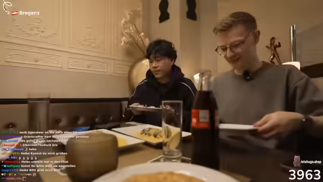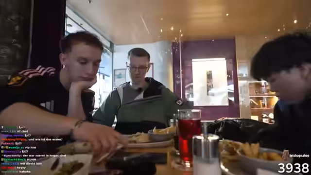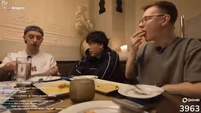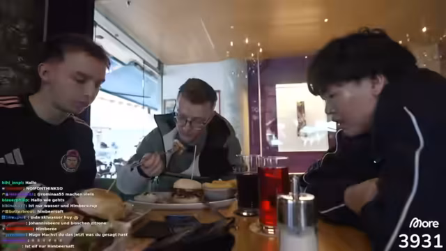 09:09:35Die Streamer setzen sich in ein Restaurant, um zu essen und zu trinken. Sie bestellen Gyros und Cola, diskutieren über ihre Essensvorlieben und sprechen über die Erlebnisse des Tages. Einer von ihnen erwähnt, dass er nicht viel Hunger hat, aber trotzdem mitisst. Sie genießen die Atmosphäre und verabschieden sich langsam vom Stream, während sie ihre Bestellung einnehmen und die Tour reflektieren. Dabei gehen sie auch auf den Alkoholkonsum ein und planen den nächsten Tag.