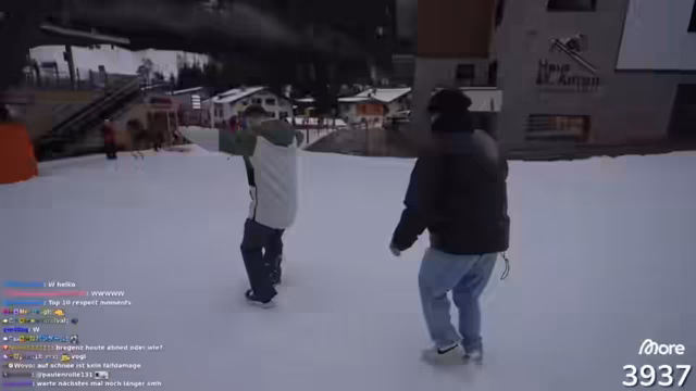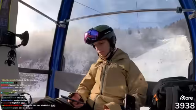 00:21:38Nachdem sie auf der Piste angekommen sind, machen die Streamer ihre ersten Erfahrungen. Der Schnee wird als 'Todesmüll' und wie 'April-Schnee' beschrieben, was die Fahrt erschwert. Einer der Streamer gibt zu, seine Bindung falsch herum eingestellt zu haben, was zu einem ungewohnten Fahrgefühl führt. Sie treffen auf den neuen 'Homie', der jedoch die falsche Piste wählt, weshalb sie sich trennen müssen. Auch ein technischer Vorfall wird thematisiert, als einer der Streamer seine Box verliert und diese erst nach einer Suchaktion im Schnee wiederfindet.