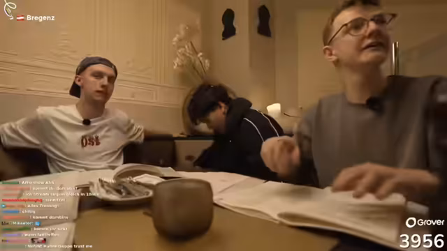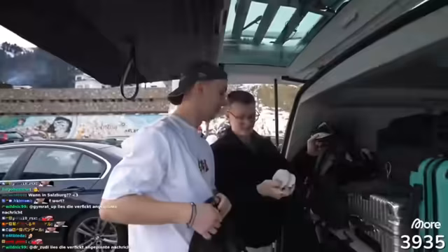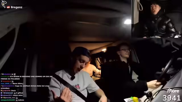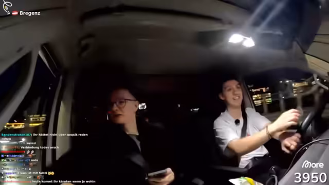 07:48:09Nach dem Einkauf diskutieren die Streamer ihre Weiterfahrt nach Bregenz und die Route entlang des Bodensees. Sie treffen unterwegs auf Heiko und Nils, einen Freund, und planen einen Hunt in Bregenz mit einem Preisgeld von 500 Euro für den ersten Finder. Während der Fahrt sprechen sie über persönliche Erlebnisse, darunter einen rassistischen Vorfall aus Hugos Schulzeit, den er reflektiert. Sie erwähnen auch, dass sie merchandise bestellen und den Shop in Österreich leeren möchten.