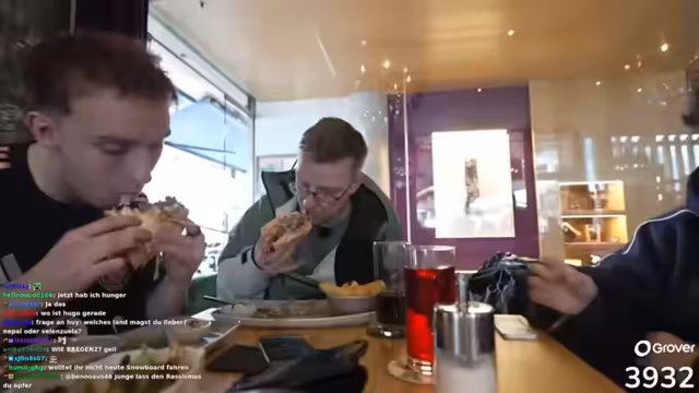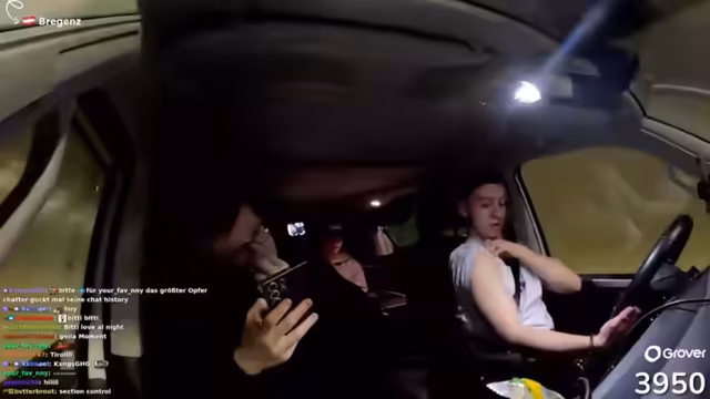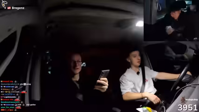02:03:04Während der Fahrt gibt es erhebliche Verbindungsprobleme zum Chat, was die Kommunikation mit den Zuschauern stark beeinträchtigt. Der Streamer hat große Schwierigkeiten, Nachrichten zu lesen und zu beantworten, und fragt die Zuschauer permanent um Ortsbestimmungshilfe. Die geheimnisvolle Ankunft an einem unbekannten Ziel, das möglicherweise mit 60 % der „Chests“ zu tun hat, bleibt ungelöst. Es wird Essen bestellt, darunter Beef Burger, Pommes und Cola, jedoch wird der Wunsch nach einem Anton-Burger verfehlt, was den Streamer schockiert.