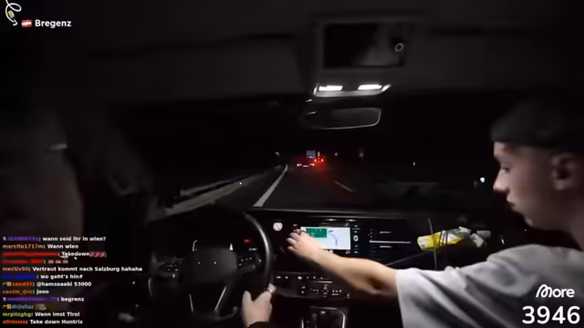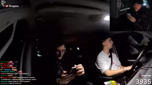 07:56:37Die Weiterreise nach Bregenz beginnt und wird als kürzer angenommen als tatsächlich, was zu einem veränderten Fahrplan führt. Während der Fahrt treten mehrere technische Probleme auf, wie ein fehlendes Mikrofon und der Verlust des Handys des Streamers, was die Kommunikation und Fortbewegung erschwert.