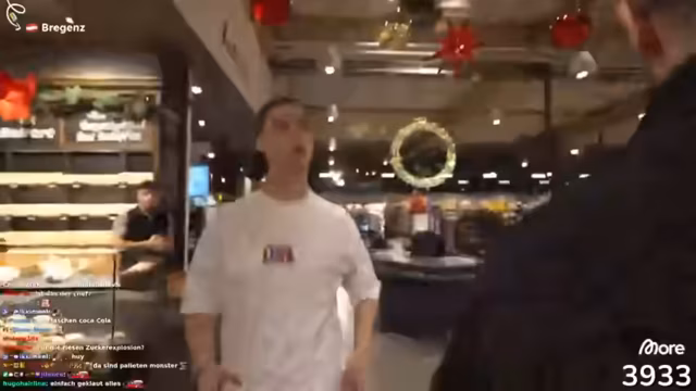 08:53:36Die Streamer beginnen, alkoholische Getränke wie Glühwein mit Amaretto zu probieren und diskutieren den Geschmack und die Stärke. Einer von ihnen betont, dass er normalerweise keinen Alkohol trinkt, aber trotzdem probiert. Sie suchen nach einem offenen Imbiss, erwähnen einen Dönerladen, der jedoch geschlossen ist, und diskutieren über die Preise und die Qualität der Getränke. Dabei tauschen sie sich über ihre Essensvorlieben aus und planen, in ein Restaurant zu gehen, falls sie etwas Offenes finden.