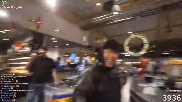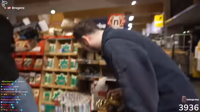 06:54:14Die Ankunft am Ziel wird vom Streamer genutzt, um eine spontane kreative Idee zu teilen: den Wunsch, einen deutschen Worldcup-Song zu produzieren. Die Spannung steigt, als das Team das Edeka betritt und eine Minute Zeit hat, den Einkaufswagen zu füllen. Der Fokus liegt auf Snacks wie Knoppers, Riegeln und limited Edition Schokolade. Die Herausforderung besteht darin, so viele wie möglich in den Wagen zu werfen, ohne sich zu beeilen und die Produkte zu beschädigen.