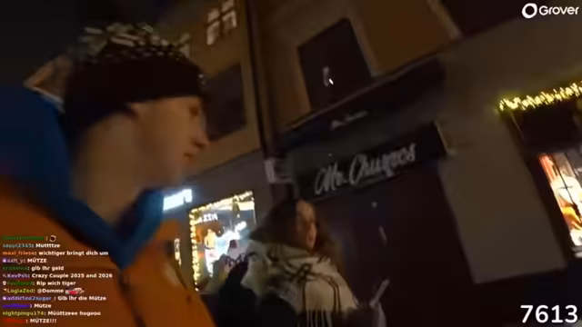 00:40:33Nachdem er aus dem Uber ausgestiegen ist, bemerkt der Streamer, dass er möglicherweise am falschen Ort abgesetzt wurde, obwohl er die korrekten Koordinaten eingegeben hatte. Er versucht, sich anhand der Umgebung zu orientieren und stellt fest, dass Qoqsik sich wahrscheinlich in einem Café in der Nähe befindet. Nach einer kurzen Suche entdeckt er sie und entschuldigt sich für seine Verspätung, die er auf den unerwartet langen Weg zurückführt. Bei der Begrüßung stellt sich heraus, dass Qoqsik friert. Es gibt technische Schwierigkeiten beim Versuch, die Streams der beiden zusammenzulegen, was zu einer vorübergehenden Unterbrechung führt. Die beiden beschließen, den Weihnachtsmarkt zu besuchen, obwohl Qoqsik warnt, dass dieser eher klein ist.