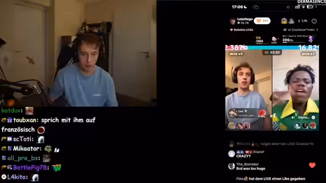 00:36:24Der Streamer führt einen Live-Stream auf TikTok durch, in dem er mit internationalen Zuschauern interagiert und einen Wettbewerb mit einem 80-Kilo-Gewicht veranstaltet. Eine besonders bizarre Interaktion erfolgt mit einem Zuschauer aus Myanmar, bei der es zu einem kulturellen und sprachlichen Missverständnis kommt. Der Streamer diskutiert danach die wachsende Popularität von TikTok und die Aufmerksamkeit, die er im Alltag bekommt.