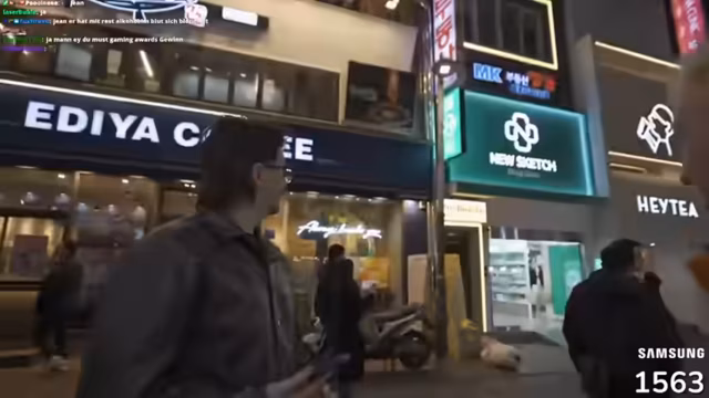 00:22:02Nach einer Ankündigung geht es los zum besuchten Night Market, einem Food Market. Zuerst werden Probleme mit der Kälte und der Orientierung thematisiert. Sie wechseln die Straßenseite und unterqueren eine Straße. Auf dem Weg wird eine Diskussion darüber geführt, ob derStreamer mit oder ohne Kappe auffälliger wirkt, und der Streamer entscheidet sich gegen die Kappe. Beim ersten Foodstand gibt es Schwierigkeiten mit der Kartenzahlung, was zu einem langen Suchen nach einem Geldautomaten führt.