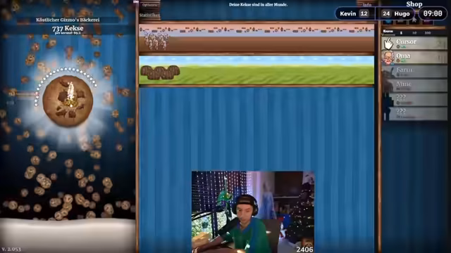 05:03:14Ein intensives Cookie-Clicker-Duell wird gestartet, bei dem beide Streamer um einen Punkt in der Olympia-Serie konkurrieren. Nach technischen Schwierigkeiten, einschließlich einer abstürzenden Webseite und der Entscheidung, das Spiel auf Steam zu kaufen, einigen sie sich auf ein 15-minütiges Zeitlimit. Gewinner ist, wer nach Ablauf der Zeit die meisten Kekse hat. Die Streamer nutzen Upgrades und Upgrades, wobei einer davon einen klaren Vorteil durch eine OP-Farbe erhält und mit Confidence in das Spiel geht.
