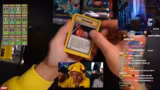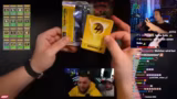 00:06:28Der Stream beginnt mit dem Gesang der Timmy-Tom-Animation, gefolgt von einer ausgiebigen Diskussion über Weihnachtsdeko. Der Hauptfokus verlagert sich schnell auf die Eröffnung von First Edition Pokémon-Boosterpacks. Hugo drückt seine Begeisterung für seltene Karten aus. Parallel dazu beginnt ein langes Experiment mit 99%iger Kakaoschokolade, die er in Honig eintaucht, um deren gesundheitliche Wirkung und Geschmack zu testen.