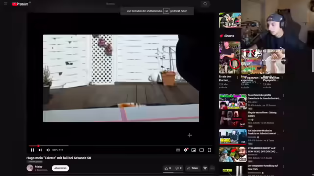 02:42:12Ein 14-jähriger spielt Trompete und der Streamer versucht, das Lied zu erraten, was schließlich als 'Accidentally in Love' identifiziert wird und mit 8 von 10 Punkten bewertet wird. Ein Motocross-Video wird gezeigt, das jedoch nur Wheelies enthält und daher eine niedrige Bewertung von 3-4 von 10 erhält, da der Streamer sich mehr Action erhofft hatte. Der Streamer scherzt über einen Prank, bei dem ein Hai in den Bodensee gesetzt wird, verwirft die Idee aber aufgrund des Hinweises, dass dies den Lebewesen schaden würde. Es folgt ein Aufruf an die Zuschauer, weitere Talente einzusenden, wobei der Streamer betont, dass er ehrliches Feedback geben wird.