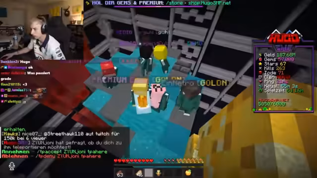 00:08:01Der Stream beginnt mit der Vorstellung des Squid Game Events, bei dem ein Schatz im Spiel versteckt ist. Der Streamer Hugo begrüßt die Zuschauer und kündigt an, dass heute ein besonderes Event stattfinden wird. Er erwähnt, dass das Spiel um 500 Millionen Ingame-Währung geht, was einen相当 hohen Wert darstellt. Die Teilnehmerzahl wird mit 50 Spielern angegeben, die um einen Preispool von 456 Millionen Dollar spielen.