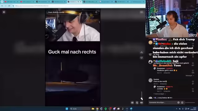 00:08:58Hugo kündigt eine spontane Nicht-Lachen-Challenge mit Kategorien an. Der Verlierer, der am meisten lacht, muss eine ekelhafte Bestrafung über sich ergehen lassen, auf die Hugo selbst keine Lust hat und die er am liebsten vermeiden würde. Ursprünglich war eine Mikrowellen-Challenge geplant, diese wird jedoch aufgrund der Anwesenheit seiner Eltern verschoben, um Konflikte zu vermeiden. Stattdessen soll die Challenge im Haus stattfinden, wobei der Chat nach Sicherheitsvorkehrungen gefragt wird, da potenziell 'kranke Sachen' involviert sein könnten. Hugo betont, dass er aus Respekt vor seinen Eltern handelt, obwohl er grundsätzlich tun kann, was er will. Er erwähnt weitere geplante Inhalte wie Only Up, Badewanne, Reactions und einen legalen Autotreffen-Stream am Samstag. Zudem teilt er eine Idee für eine Deutschland-Tour in einem umgebauten Laster mit Streaming-Setup, um mit Streamern in verschiedenen Städten zusammenzuarbeiten und sowohl IRL- als auch PC-Streams zu ermöglichen. Er zeigt TikToks und reagiert auf Kommentare, wobei er sich über fragwürdige Inhalte und Kommentare aufregt und die 'Dead-Internet-Theorie' anspricht.