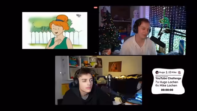 02:04:50Hugo und Wichtiger sind mit ihrer Auswahl nicht zufrieden, einigen sich aber darauf, mit dem Vorhandenen zu arbeiten. Sie spielen 'Schere, Stein, Papier', um zu entscheiden, wer anfängt. Wichtiger gewinnt und will sein Video zuerst zeigen. Sie einigen sich darauf, dass nicht pausiert werden darf, es sei denn, jemand lacht. Hugos Video geht ebenfalls 9 Minuten 2. Sie stellen fest, dass sie genau dasselbe Video ausgewählt haben: 'Caillou und die Todesrutsche'. Hugo hatte das Video aus dem Chat bekommen. Sie beschließen, das Video gemeinsam anzusehen, ohne zu lachen, und sich gegenseitig auszulachen, wenn jemand lacht. Hugo und Wichtiger starten das Video und versuchen, nicht zu lachen. Hugo macht Kommentare zum Video, wird aber ermahnt, nicht zu reden.