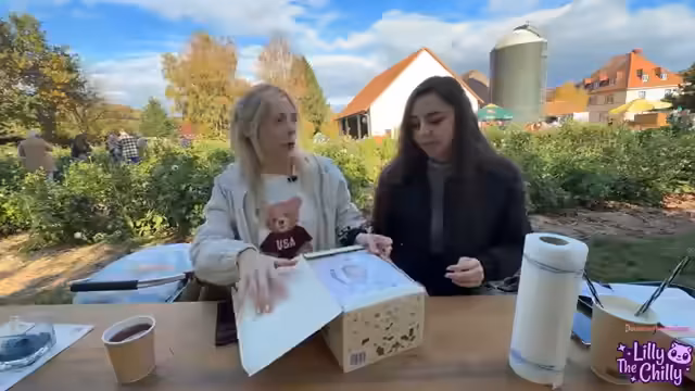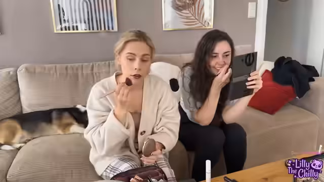 01:01:33Nach dem Frühstück bereiten sich beide für den Besuch auf der Kürbisfarm vor. Dies umfasst das Auftragen von Make-up. Während Lilly ein natürliches Make-up mit Concealer, Foundation und Lippenstift trägt, testet die Streamiererin verschiedene Produkte, darunter auch Lidschatten und Bronzer. Das Gespräch während des Schminkens ist persönlich und reicht von eigenen Schmink-Erfahrungen in der Jugend bis zu Diskussionen über gesellschaftliche Schönheitsideale und den Umgang mit Kritik in den sozialen Medien.