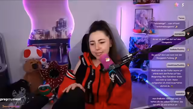 00:15:02Ein zentrales Thema des Streams sind die Führerschein-Erfahrungen. Die Streamerin teilt, dass sie ihren Führerschein mit 17 begonnen und mit 18 bestanden hat, beide Prüfungen auf Anhieb. Sie diskutiert mit der Community, wie alt sie beim Erwerb waren und wie viel Geld dies gekostet hat. Insbesondere die hohen Kosten von über 2000 Euro und die gestiegenen Preise heben sie hervor und betonen, dass das nicht für jeden bezahlbar ist.