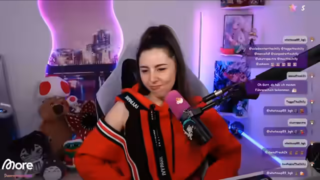 03:24:30Es findet eine Diskussion über Kleidung statt, bei der die Streamerin zeigt, welche Kleidungsstücke sie aussortiert hat und welche sie behält, auch wenn sie sie nicht mehr trägt. Ein Freund kommt in den Stream und die Streamerin unterhält sich über das Thema "Donut-Grillen" für zukünftige Streams. Die Stimmung ist entspannt, aber es wird auch Alltagsfrust thematisiert, wie etwa Müdigkeit und das Aufwachen mittags. Die Streamerin erwähnt ihre Pläne für einen weiteren Stream mit Squash und geht dann zum sportlichen Event, wobei sie den Chat über technische Anpassungen informiert.