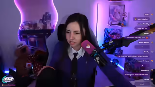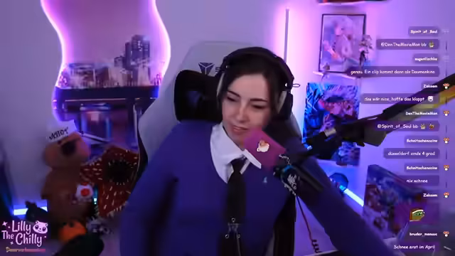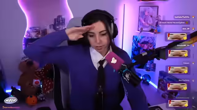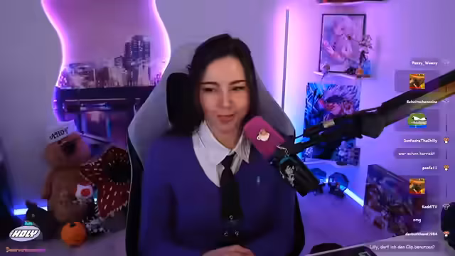 00:08:17Der Stream beginnt mit der Vorstellung eines neuen, von Saku und der Streamerin gemeinsam erarbeiteten Chat-Overlays, dessen Transparenz noch angepasst werden muss. Nach einigen Begrüßungen und einem kurzen Rückblick auf den vorherigen Stream, äußert die Streamerin ihre Freude über den Titel des heutigen Streams, der als Entschuldigung für frühere Neckereien dient und die Zuschauer als die schönsten Menschen bezeichnet. Anschließend präsentiert sie ihr „Casual Punk Business Outfit“, bestehend aus einer aussortierten Weste, einem Hemd-Ausschnitt und einer Krawatte. Sie teilt ihre Philosophie, Kleidung nicht zu schnell auszusortieren, da sich Stile ändern und oft zurückkehren. Das Outfit wird von den Zuschauern positiv aufgenommen, und es folgt eine Diskussion über Schuluniformen und individuelle Modestile.
