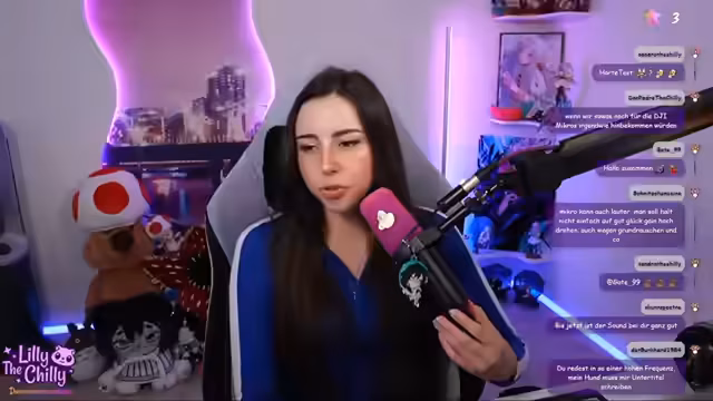 00:09:42Nachdem Lilly auf den saarländischen Dialekt eingeht, wechselt das Thema kurz zu technischen Aspekten wie einem Mikrofonfilter. Sie erklärt die Funktion eines Kompressors und Limiters zur Regelung der Lautstärke. Gleichzeitig bedankt sie sich herzlich bei den Zuschauern für Spenden, Bits und Sub-Gifts und zeigt sich hocherfreut über die Unterstützung ihrer Community, besonders im Hinblick auf ihren aktuellen Schwangerschaftsmonat.
