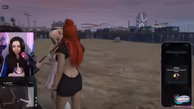 03:42:18Die Streamerin, Daisy und Nami fahren mit einem Roller durch die Stadt und erleben verschiedene Situationen. Unter anderem besuchen sie eine Tiki-Bar, die jedoch noch nicht geöffnet ist. Die Gruppe gerät mit einem aggressiven Mann aneinander, der sich später als Patrick herausstellt und als potenzieller Angreifer wahrgenommen wird. Die Frauen begeben sich schließlich in den Whirlpool, was zu einer Konfrontation und einem Streit über Umweltverschmutzung führt.