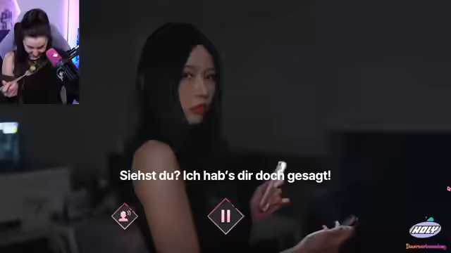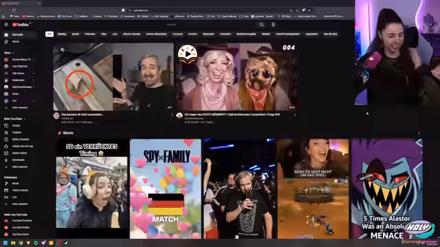 03:50:18Beim Anschauen der Clips entdeckt die Streamerin zufällig ein Spiel mit dem Namen 'Hugo', was einen kurzen, unvorhergesehenen Einschub in den Programmablauf darstellt. Sie beschreibt das Spiel als 'Vollcontent' und bemerkt, dass es sich um eine Compilation von einer anderen Bubble handelt. Das Spiel führt zu humorvollen, spontanen Aktionen, wie das Verschieben von Gegenständen und das Erzählen von Anekdoten. Es entsteht eine unkonventionelle und ablenkende Stimmung, die von der eigentlichen Reaktion abweicht und pure spontane Unterhaltung bietet.