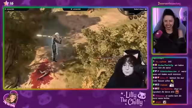03:23:43Einige Chatter wechseln vom Deutschen ins Englische, was bei der Streamerin anfänglich für leichte Verwirrung sorgt. Sie erklärt sich den Sprung auf Englisch damit, dass sie sich selbst anpassen wolle, auch wenn sie sich als internationalen Streamer bezeichnet. Es kommt zu Diskussionen im Chat, bei denen der Verdacht geäußert wird, dass einige User vielleicht neue Accounts erstellt haben, um ihre Sichtbarkeit im Chat zu erhöhen. Dies führt zu einem lockeren Witz über den 'Wurstmann' und ein Universum, das anscheinend Zufälle arrangieren will.