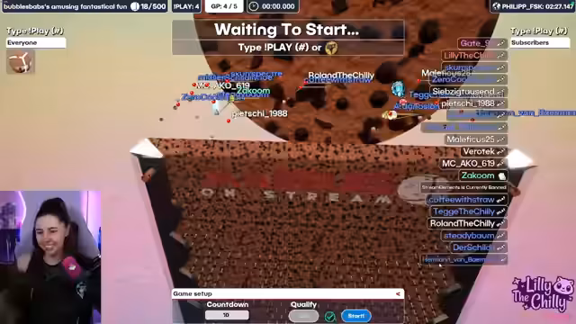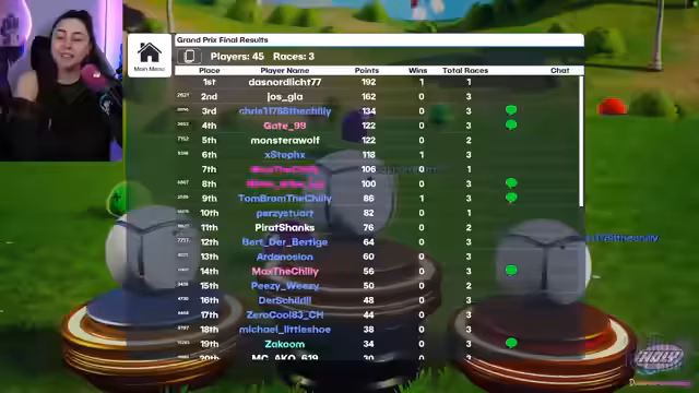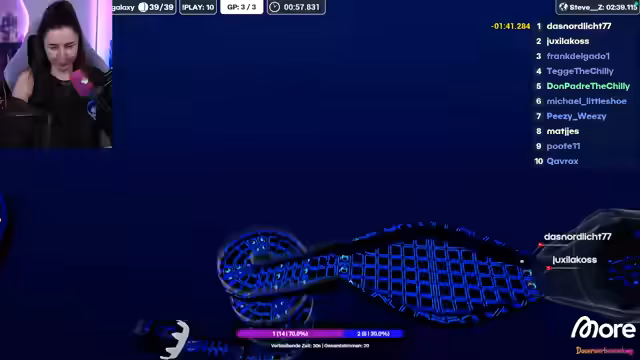 01:38:54Nach mehreren Runden des Marbles-Spiels werden die finalen Platzierungen bekanntgegeben. Der Gewinner Marcel erhält fünf Sub-Gifts als Belohnung, was vom Streamer Marcel selbst angestoßen wurde. Die Platzierungen werden detailliert vorgestellt, wobei P2O78 den zweiten und Not Just Max den dritten Platz belegt. Die Streamerin zeigt sich stolz darauf, dass zwei ihrer Chilis in den Top 10 platziert sind, und diskutiert die Ungereimtheiten bei der Punktberechnung, besonders bei Spielern wie Bitspi, die trotz weniger gespielter Runden einen hohen Platz erreichten.