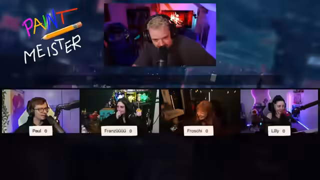 05:07:20Das Format Paint Meister wird mit einer neuen Folge gestartet, an der bekannte Gäste wie Paul und Franzi teilnehmen. Kern des Spiels ist, dass die Teilnehmerinnen in einem Online-Tool vorgegebene Begriffe oder Charaktere zeichnen müssen. Die Moderation erklärt die Regeln und eine wichtige Neuerung: Alle Chats dürfen nun mit Ausrufezeichen abstimmen, welche Zeichnung die besten Punkte erhält.