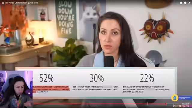 02:08:34Es wird die Partnerschaft mit Female Company erwähnt, die Europas leistungsstärkste Periodenunterwäsche anbietet, welche von Expertinnen entwickelt wurde und bereits bis zu 1,5 Millionen Mal verkauft wurde. Es wird auf den PMS-Sale von The Female Company hingewiesen, bei dem Rabatte von bis zu minus 50% und minus 15% mit dem Code tfc-gnu on top erhältlich sind. Es gibt auch Rabatte bei Emma-Matratzen von bis zu 50%. Es wird betont, dass es gefährlich sein kann, wenn man sich als Chiropraktiker ausgibt und für Klicks junge Frauen einrenkt. Es werden Beispiele von Videos genannt, in denen Patientinnen nach dem Einrenken Schmerzen hatten, und Kommentare, die dies bestätigen, wurden gelöscht. Es wird kritisiert, dass solche Clips und Kommentare einfach verschwinden gelassen werden. Es wird festgestellt, dass es kein Wunder ist, wenn sich irgendwelche Leute im Internet Hieropraktiker nennen und für Klicks alles machen. Es wird der Instagram-Algorithmus kritisiert, der bizarre Clips ausspielt, und die Fetischisierung des Berufs als Chiropraktiker sowie die Objektifizierung von Frauen in den Kommentaren werden bemängelt. Es wird betont, dass die Sexualisierung im Gesundheitsbereich nichts auf Social Media zu suchen hat und die Grenze zu Filmchenseiten immer mehr verschwimmt. Viele dieser Clips sind nicht auf 18 plus gestellt, was problematisch ist, da Jugendliche leicht darauf zugreifen können. Es wird betont, dass man solche Clips melden sollte, um zu verhindern, dass solche Accounts riesig werden.