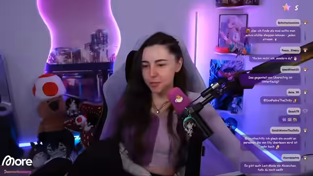 02:59:23Ein emotionaler und tiefgründiger Abschnitt folgt, in dem die Streamerin offen über ihre Selbstwahrnehmung und den Wunsch nach persönlicher Entwicklung spricht. Sie erwähnt ein Gespräch mit ChatGPT, das sie dazu veranlasste, zu überlegen, warum ihr Kanal weniger weibliche Zuschauer hat. Dabei reflektiert sie über ihren ironischen und lauten Humor und erkennt, dass sie ihre Emotionen oft als Schutzmechanismus mit Jokes verschleiert. Sie wünscht sich, authentischer und offener zu sein und mehr Emotionen zu zeigen, sowohl im Stream als auch im Alltag.