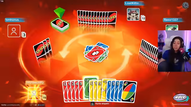 03:35:07Die Uno-Runde entwickelte sich zu einer scheinbar endlosen Partie, was zu Frustration und humorvollen Kommentaren im Chat führte. Die Spieler wechselten sich ständiger ab, nutzten Konterkarten und schienen kein Ende zu finden. Der Stream endete damit, dass die Streamerin den Spielern drohte, das Spiel abzubrechen, und sich über die Dauer der Runde lustig machte, bevor sie den Stream offiziell beendete.