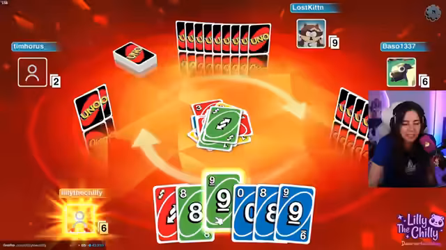 03:09:16Die Uno-Runde beginnt turbulent, mit aggressivem Gameplay und endlosen Kontern. Eine der Spielerinnen, Lost Kitten, wird als besonders ehrgeizig entlarvt, da sie das Spiel bereits neunmal gewonnen hat. Die Runde zieht sich in die Länge, mit ständigen Farbwechseln und dem Einsatz von +4 Karten. Es kommt zu hitzigen Diskussionen über die Regeln und Anfechtungen. Einige Spieler fühlen sich benachteiligt und es kommt zu Beschuldigungen und Schuldzuweisungen. Die Runde wird als die längste Uno-Runde aller Zeiten bezeichnet und die Spieler leiden unter Lachkrämpfen und Frustration. Trotz der Aggressivität und des endlosen Spiels haben die Teilnehmer Spaß und die Zuschauer sind begeistert. Es wird überlegt, ob die Runde jemals zu Ende gehen wird und ob jemand noch andere Verpflichtungen hat.