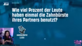 01:52:23Anschließend wechselt die Gruppe zu einem anderen Jackbox-Spiel namens Quidplash. Dabei wird das Spiel durch einen Szenewechsel gestartet. Die Spieler lesen die Fragen und bereiten sich auf Schätzrunden vor. Die erste Frage lautet: 'Wie viel Prozent der Leute sind einmal alleine bowlen gegangen?'. Es folgen weitere lustige und skurrile Themen, wie 'Penis' oder 'Hintern', die zu humorvollen Diskussionen führen.