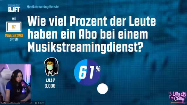 00:26:25Ein emotionaler Höhepunkt ist die Dankbarkeit für die Unterstützung, insbesondere ein geschenktes Abonnement von einer Zuschauerin, die Lilly als wichtige Aufmunterung und Lieblings-Streamerin bezeichnet. Lilly zeigt sich tief berührt und teilt mit, dass sie einen sensiblen Tag mit ihrer Mutter hatte. Daraufhin startet der eigentliche programmatische Teil des Streams mit dem Jackbox-Spiel, das über einen geteilten Link gespielt wird.