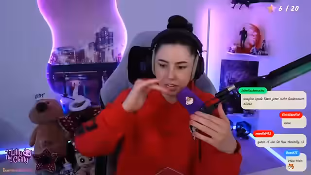01:15:03Es wird mit den Reaktionen auf Videos begonnen, wobei zuerst Vollcontent und dann Streamclips Germany behandelt werden sollen. Die Streamerin scherzt über ihr Gojo-Bild im Hintergrund, das wie eine Garnele aussieht. Sie reagiert auf Kommentare im Chat, verteidigt ihre Wortwahl und bittet um mehr Liebe im Chat, da sie sich von negativen Kommentaren deprimiert fühlt. Es wird eine Geschichte erzählt, wie Matteo die Arbeitskollegin ihres Bruders gegrüßt hat, die ein Fan von ihm ist. Anschließend wird über einen Fahrlehrer gesprochen, der eine Peitsche im Auto hatte, was als Spaß gemeint war. Die Streamerin erzählt von ihrem traumatischen Erlebnis mit ihrem ersten Fahrlehrer, der etwas Unangebrachtes sagte, woraufhin sie weinen musste und die Fahrstunde abbrechen musste. Sie betont, dass sie normalerweise nicht schnell weint.