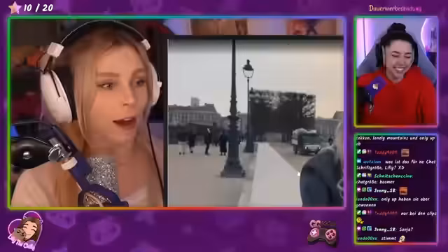 01:40:58Die Streamerin äußert ihren Schock darüber, dass Tiere in Spielen getötet werden und betont, dass dies eigentlich ein No-Go sein sollte. Sie entschuldigt sich für einen Ohrwurm, den sie im Chat verbreitet hat und bittet Jen um eine Version davon. Anschließend wird über die unbequeme Sitzposition auf ihrem Stuhl gesprochen und das Problem, dass ihre Füße nicht auf den Boden kommen. Sie empfiehlt eine Fußstütze unter dem Tisch als Lösung für kleine Menschen. Es wird ein Witz darüber gemacht, ob sie den Stuhl aus der örtlichen Grundschule gestohlen hat. Die Streamerin erzählt von ihrem peinlichsten Erlebnis, als sie fast in ihr Auto gemacht hätte und stattdessen an einer Raststätte ins Gras geschissen hat. Sie erwähnt ein witziges Gespräch zwischen Kaddi, Sonja und Kim, das sie sich im VOD angesehen hat.