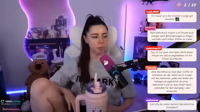 00:34:46Es wird eine Diskussion über Frauenquoten in Unternehmen und im Casting von Shows wie Rocket Beans angestoßen. Die Streamerin ist der Meinung, dass gesetzliche Quoten zwanghaft und oft schädlich sein können, da sie den Verdacht auf Qualifikationsnachteile erzeugen. Sie plädiert für gleiche Chancen basierend auf Talent und Können, erkennt aber an, dass in der Praxis, besonders in der Arbeitswelt, Frauen systematisch benachteiligt werden. Als konkretes Beispiel wird genannt, dass Frauen bei Bewerbungsgesprächen nach ihrem Kinderwunsch gefragt werden.