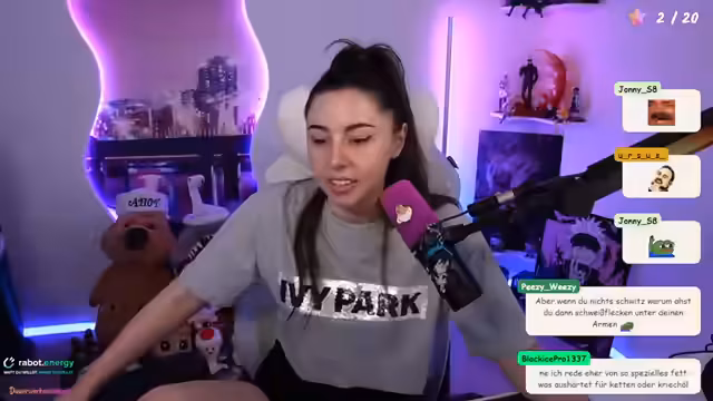 01:25:02Ein zentraler Punkt des Gesprächs war die intensive und häufige Nutzung von Emotes im Chat. Die Streamerin erklärte, dass sie Emotes für die korrekte Interpretation ihrer Aussagen für unerlässlich hält. Sie fühlt sich unwohl, wenn Zuschauer auf ihre Nachrichten ohne Emotes antworten, da sie dann befürchtet, dass sie ihnen missfallen könnten. Dies ist ein fester Bestandteil ihrer persönlichen Kommunikation mit der Community.
