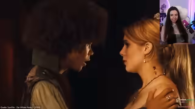 03:37:54Im Stream wird der Film 'Die wilden Kerle 5' besprochen. Es geht um die Vampir-Blossom, die versucht, Maxi zu verführen, um an Vanessa heranzukommen. Die wilden Kerle sind gefangen und müssen in einem Fußballspiel gegen die Vampire antreten, um ihre Freiheit zu erkämpfen. Der Streamer analysiert die Handlung und kritisiert Logiklücken, während die Kerle durch einen kreativen Plan ein Tor schießen. Maxi opfert sich und wird versteinert, während Vanessa das siegbringende Tor erzielt.